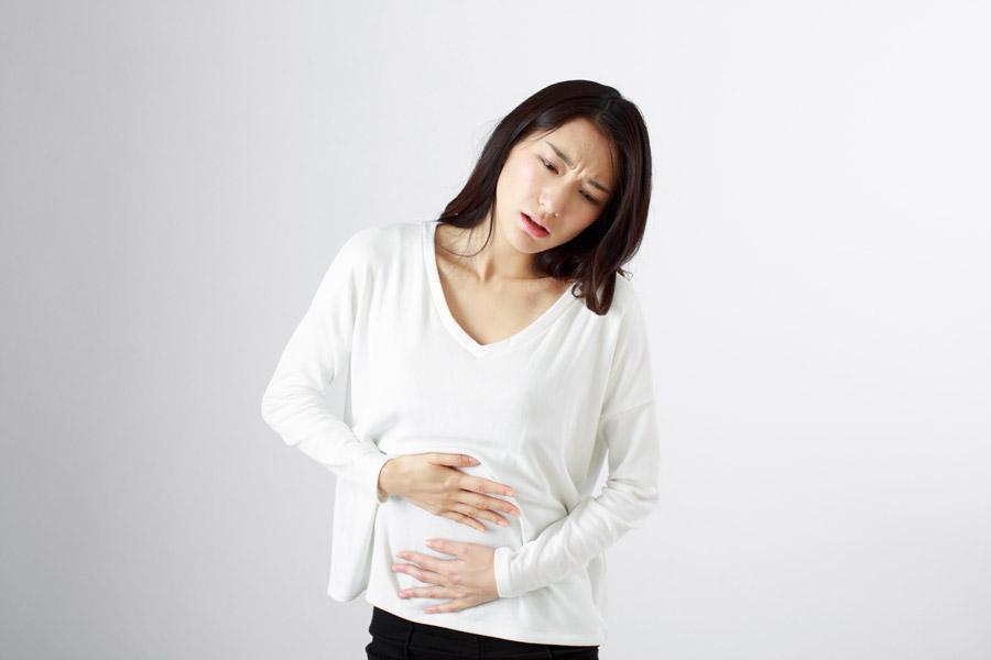 プロゲステロン:排卵後に分泌され、イライラや腹痛を引き起こし、腸の活動を抑制する働きを持つ。